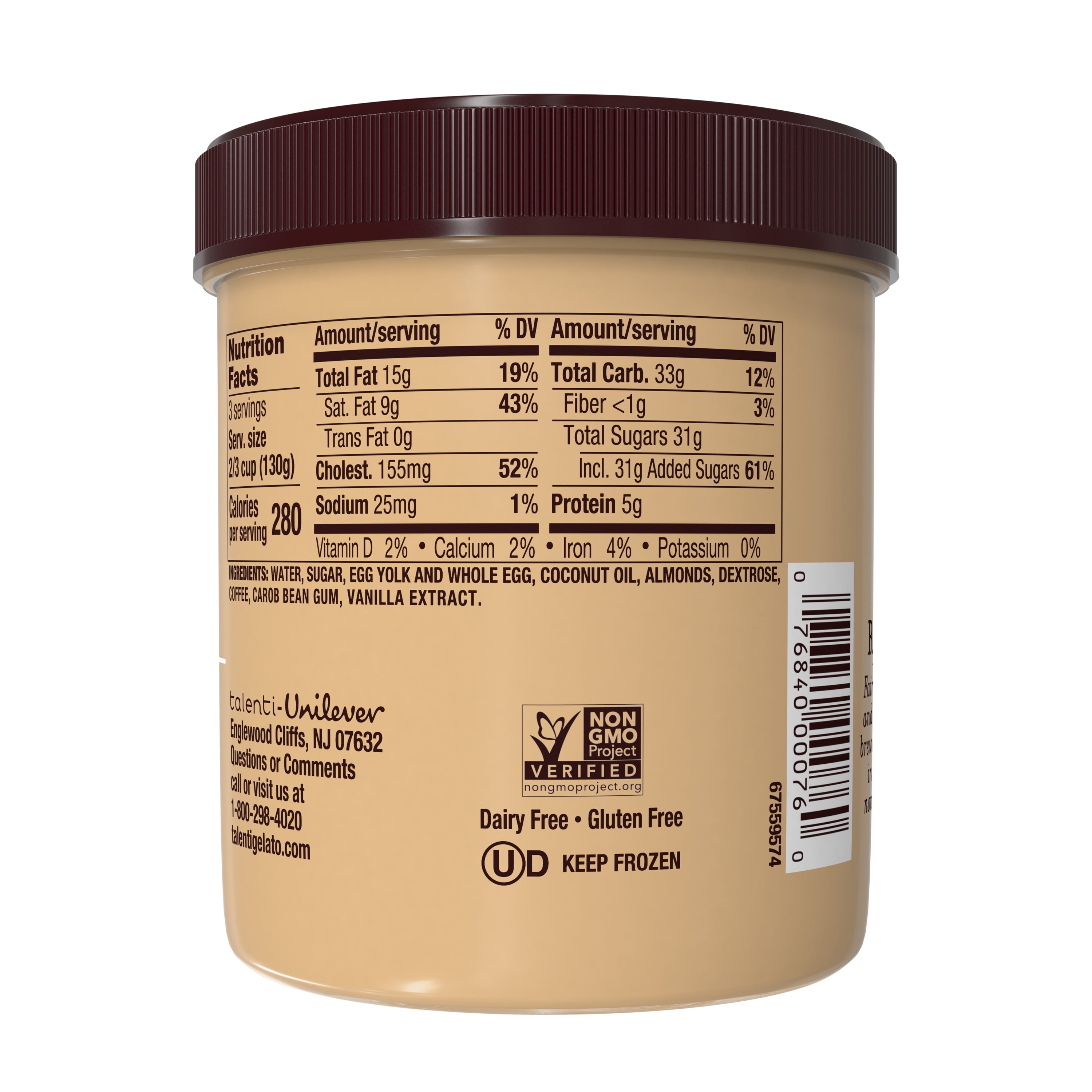 Most of those calories come from carbohydrates 86. Talenti Cold Brew Coffee Dairy Free Sorbetto. There are 130 calories in a 05 cup serving of Talenti Dairy Free Sorbetto Blood Orange.
